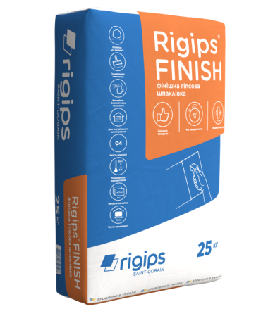 Rigips FINISH — створена для продуктивного і легкого фінішного вирівнювання внутрішніх стін і стель. Підходить як для ручного, так і для механізованого нанесення. Її висока пластичність забезпечує легке нанесення та непомітне зведення шарів. Завдяки оптимальній консистенції для різних методів нанесення, вона легко наноситься та шліфується, скорочуючи час роботи та досягаючи професійного результату. Ви самі в цьому запевнитесь, коли спробуєте на власному досвіді. Rigips Finish це надійне та економічне рішення для сміливих проектів.