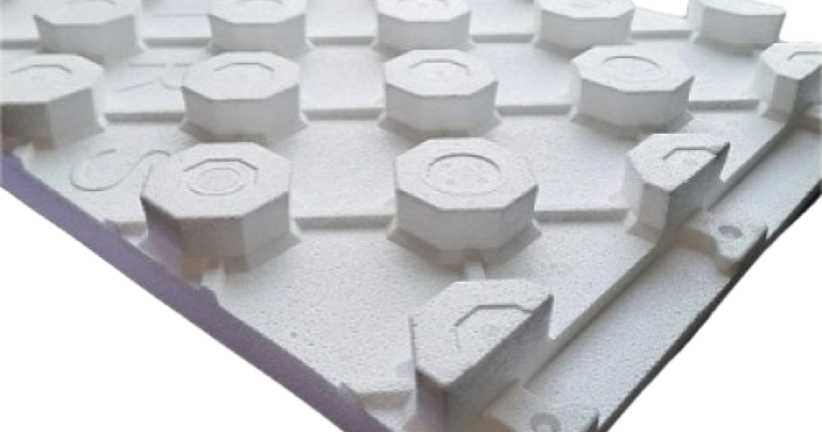 Ізоляційні панелі з пінополістиролу EPS без покриття (плити або мати з бобишками) для швидкого монтажу «теплої підлоги» з водяним обігрівом.